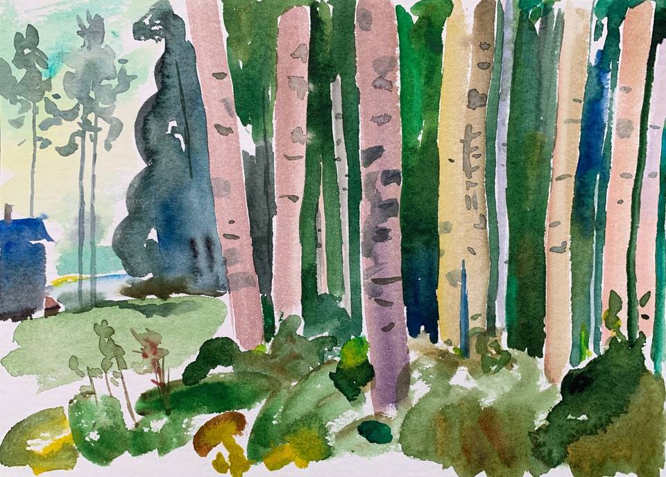 Эта серия объединяет работы маслом и акварелью, созданные в том особом настроении тишины и сосредоточенности. В них — свежесть утренних прогулок, звук дождя по деревянной крыше и ощущение уединённого покоя, которое так редко удаётся поймать в повседневности.