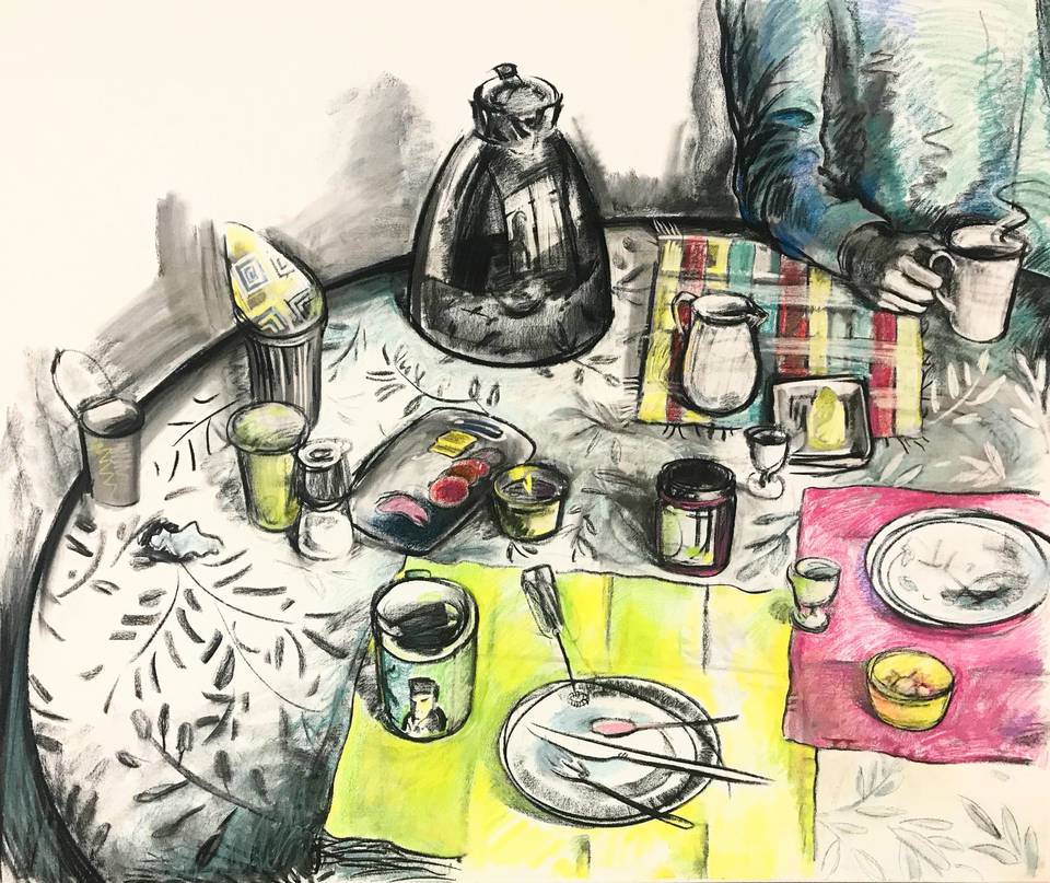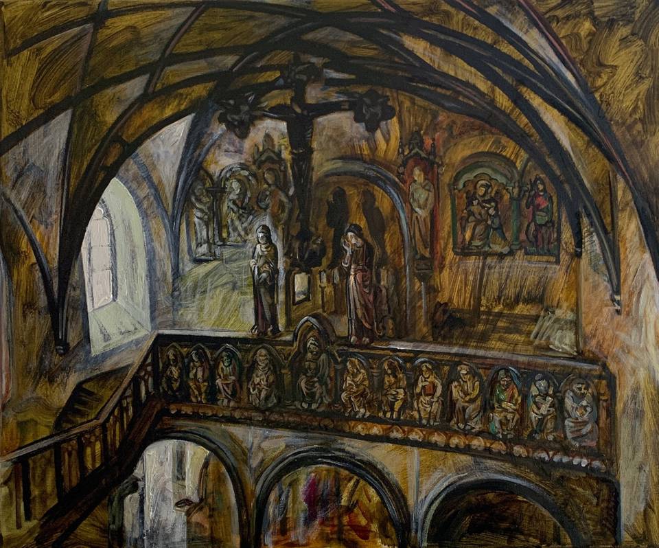 Я работаю и в графике, и в живописи. Люблю точность линии, плотность чёрного в линогравюре, шершавость угля и графита. В масле же появляется цвет, объём воздуха, возможность говорить тише и медленнее, позволяя краске самой вести рассказ.