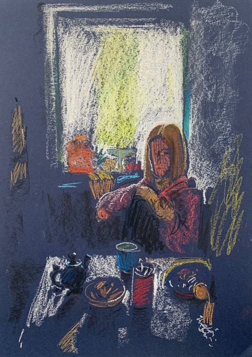 Сейчас я продолжаю учиться, пробовать новые техники и материалы, быть среди тех, кто живёт искусством. Хочу показывать работы шире круга близких, получать отклик и расти — постепенно уходить от лишних деталей к цельному и точному образу, чтобы зритель мог просто оказаться внутри.